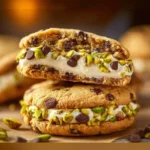 If you like, roll the edges of the assembled cookies in extra mini chocolate chips or crushed pistachios for added texture and decoration.