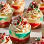 No-Bake Christmas Mini Cheesecakes are the perfect dessert for the holiday season. They are not only delicious but also easy to prepare. Since they don’t require any baking, these mini cheesecakes save you time and reduce the stress of cooking in the kitchen during the busy holiday period. They are creamy, sweet, and can be customized with your favorite toppings. The presentation is delightful, making them an appealing treat for family gatherings and holiday parties. Plus, each mini cheesecake can be a single serving, which adds a special touch to any dessert table. Trust me, these mini cheesecakes will become a holiday tradition in your home!