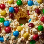 A whimsical dessert combining crunchy popcorn, gooey marshmallows, and colorful M&M’s, perfect for parties and family gatherings.